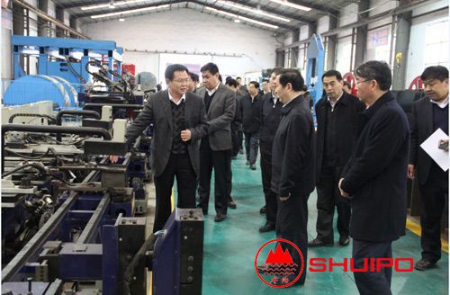 2014312日,山東省委省政府張超超副省長(圖中)一行在市縣領導的陪同下,來公司進行視察、調研。公司劉憲福董事長向張超超副省長,詳細介紹了“數控廂板自動焊接機”“異形罐體環縫TIG自動焊機”等多個公司自主研發的新產品。